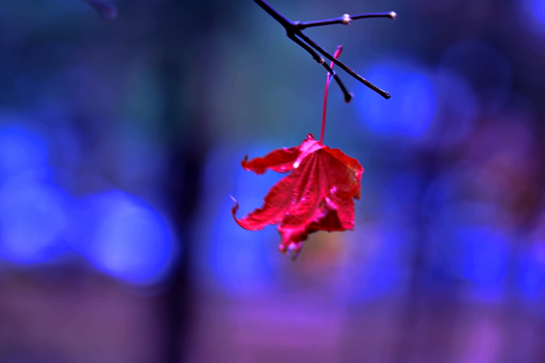 늦가을, 아름답게 물들였던 가을 잎이 떠나고 있습니다. 나뭇가지에 매달린 단풍잎 하나가 눈에 띄었습니다. 녀석이 바람에 흔들리는 것을 보고 가만히 지켜보았습니다. 마치 떠나지 않으려고 아등바등 애쓰는 것 같았거든요. 바람이 멈추면 사진을 찍어 볼까 하고 기다렸죠. 그런데 내 마음 같지 않았습니다. 어쩔 수 없이 셔터를 눌렀죠.